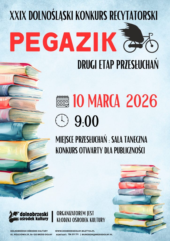 Zapraszamy na drugi etap przesłuchań konkursu recytatorskiego „Pegazik”! To wyjątkowa okazja, by posłuchać młodych talentów i poczuć magię żywego słowa.